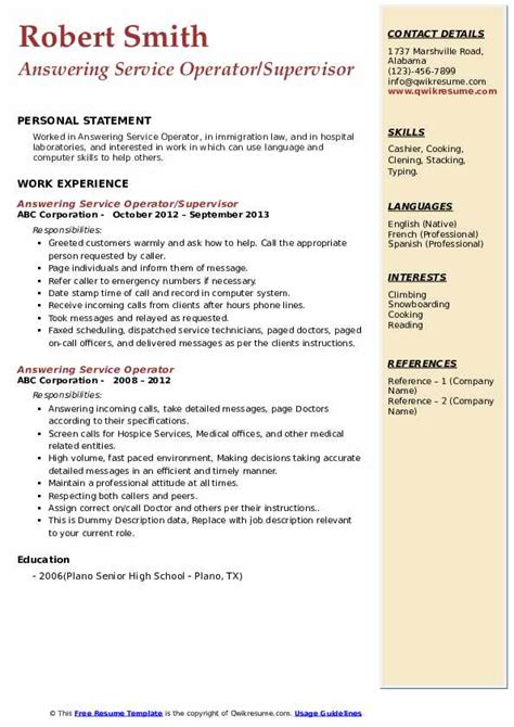 Read Online Answering Service Operator Job Description Reader